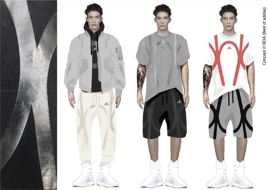 B.O.A is the an acronym for Best Of Adidas…and that was the brief. I looked at the best in class Adidas technology from adidas’ recent past and showcased the distinctive aesthetic of ‘Powerweb’ on beautifully fabricated, contemporary silhouettes, destined for premium retailers.