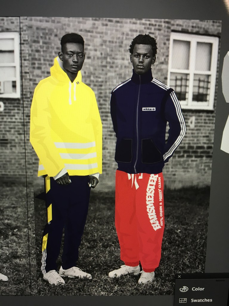 At the start of 2016, I met with the Creative Director of Adidas Originals and we discussed the idea to set up a new creation process. From there I set up a process whereby the men’s, women’s apparel and accessories teams could start to work outside of the the regular calendar to pursue design ideas that had no business brief. The ‘hands on’ design process, under my facilitation, grew in stature over the preceding years and was written into the calendar and called the ‘Dream Phase’. Many creative projects that started life in the Dream Phase went on to be produced and many more are ongoing. I firmly believe the freedom to create outside of set timelines can create impactful outcomes and authentic stories. The photos below document the growth of the Dream Phase process and one personal project of mine.
