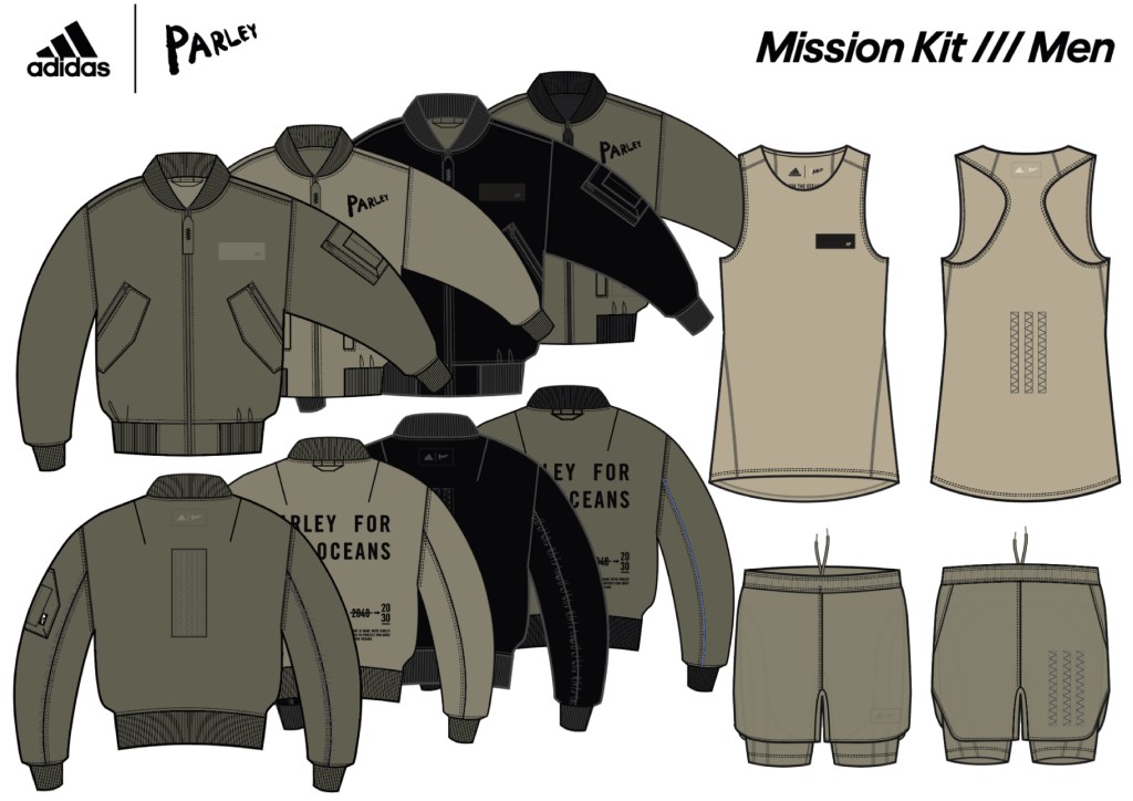 Parley for the Oceans is an environmental organization that retrieves unwanted plastic from the oceans, spins it into yarns, which ultimately become new fabrics. In 2020 I led a small design team to create the Parley X Adidas Mission and Activist kits for the Adidas Running and Sportswear teams. Blending high performance activewear and contemporary lifestyle sportswear was at the core of the range, which ran for a number of seasons in new fabrication and printed iterations.
