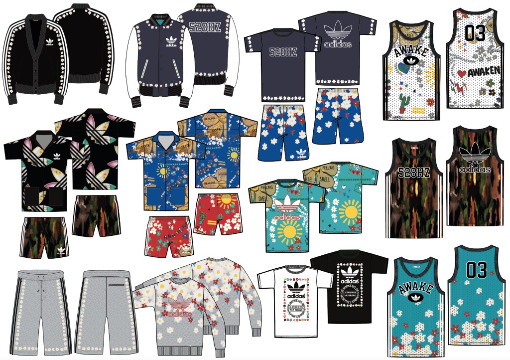 I designed the menswear element of the first full collection between Pharrell Williams and Adidas. Having received the broad creative direction from Pharrell, the design team and Myself conceptualised his vision with sample garments, graphic ideas and sketches before arriving at the final Pink Beach collection.