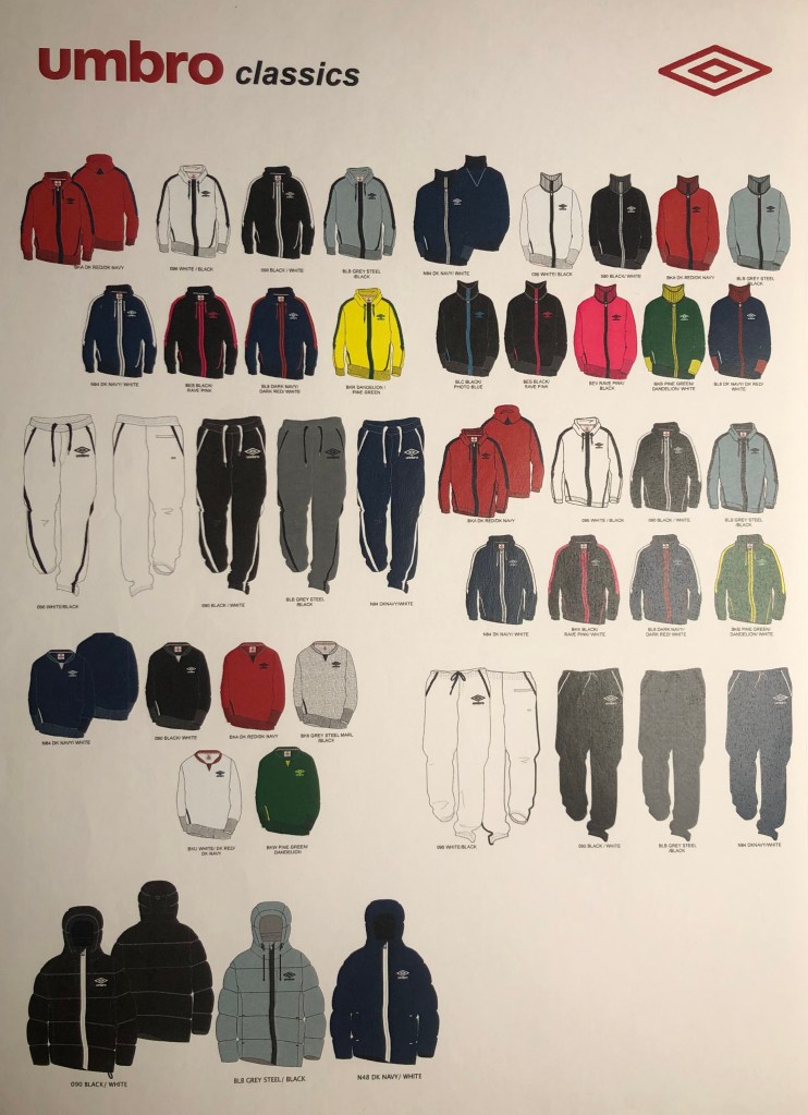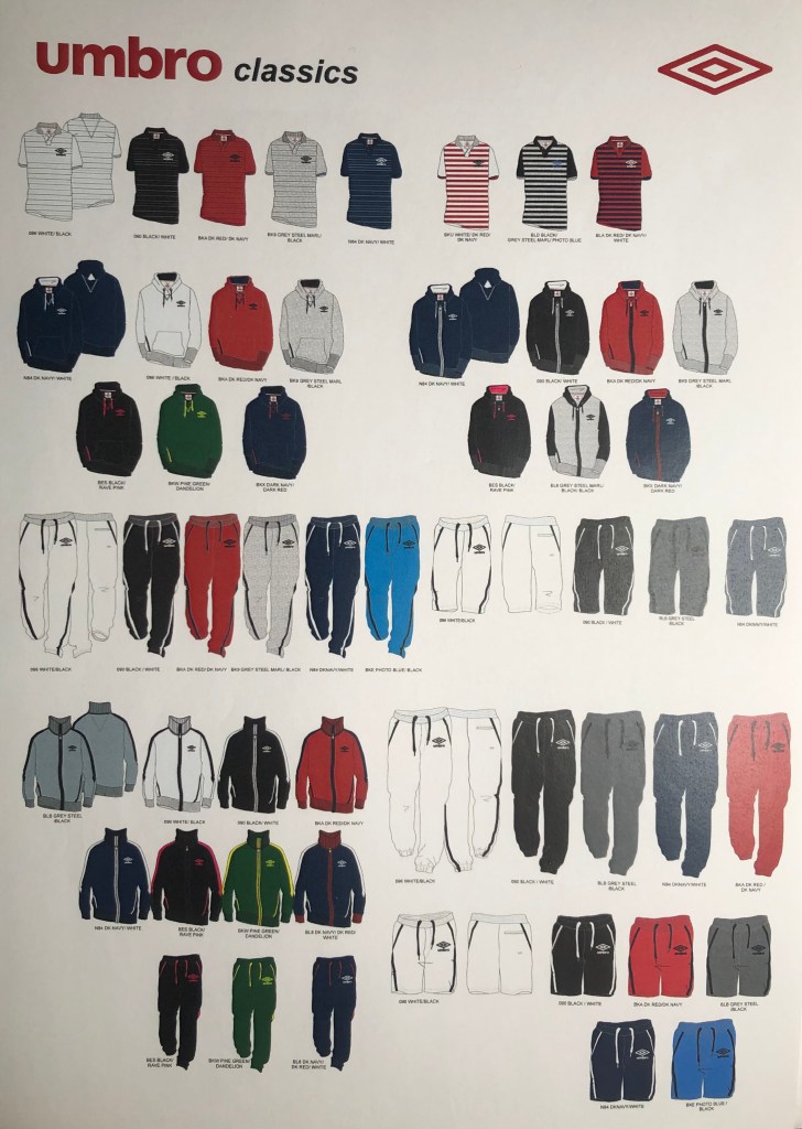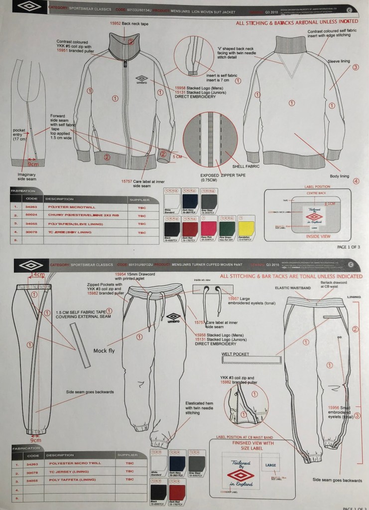 During my brief employment at Umbro (Manchester), I had the opportunity to develop their lifestyle apparel offer. This meant continuing the work I had done teaching at the RCA in order to create new ideas for the future, as well as building a very solid commercial base of sportswear essentials. Both extremes fed off and support each other, I was creating tech packs and color merchandising an essentials range one day…and the next day I was back in London, project managing students for the Umbro/RCA catwalk show 2010.