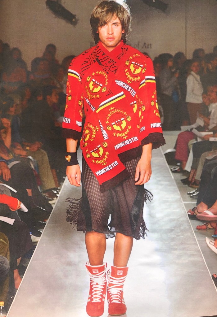 In my final year on the MA Menswear course at the RCA, I found myself really looking into the authentic influences in my life at the time…this meant sports, pubs and bars and my own wardrobe became key influences. I learnt to work with what influenced my day to day even though, at the time, they didn’t seem obvious, credible fashion cues.